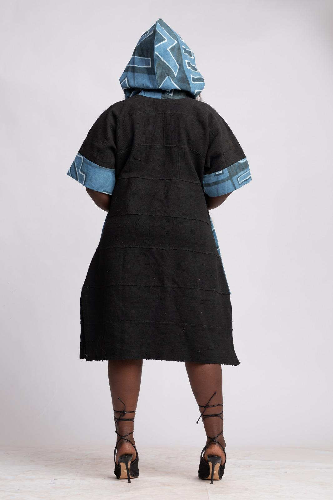 Soyez le premier à laisser votre avis sur “Robe droite noire 3/4 avec capuche en bogolan et pagne tissé / Taille 40-42”