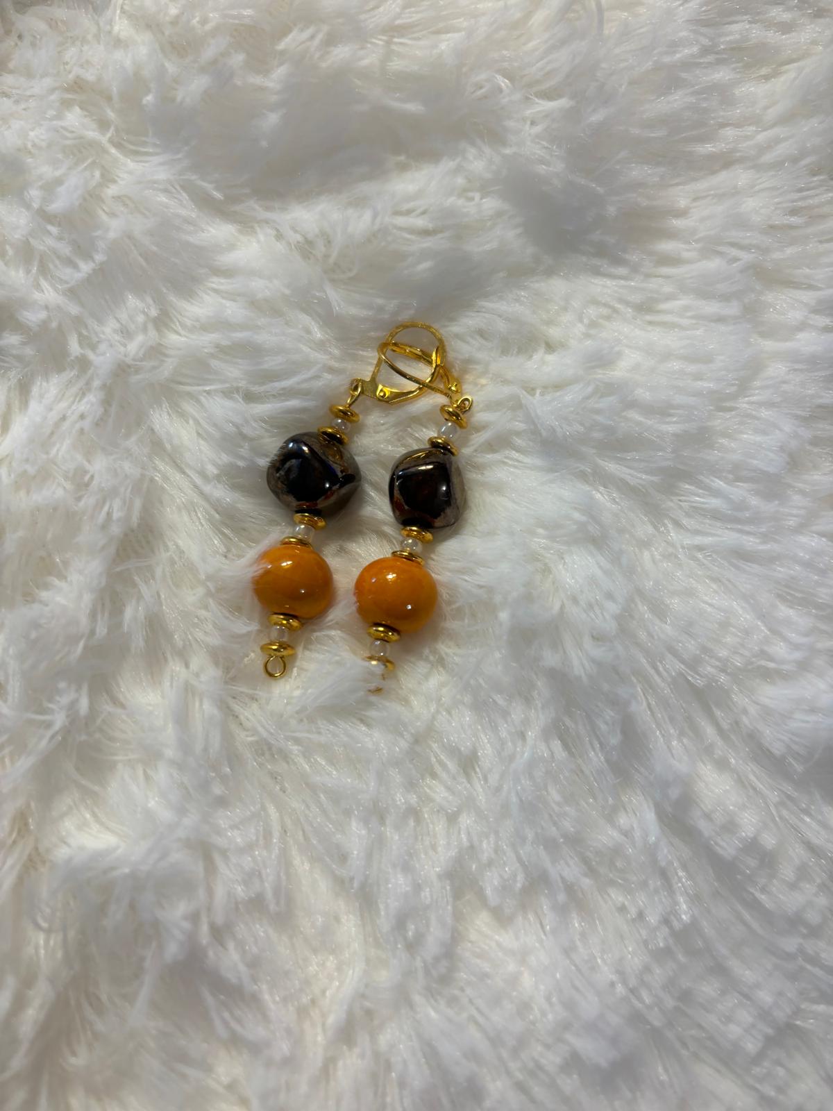 Ces boucles d’oreilles en céramique présentent un design élégant aux teintes marron et jaune. La finition mate et les motifs subtils ajoutent une touche artisanale unique. Légères et confortables, elles se marient parfaitement avec une variété de tenues, apportant une touche d’originalité et de chaleur à ton look.