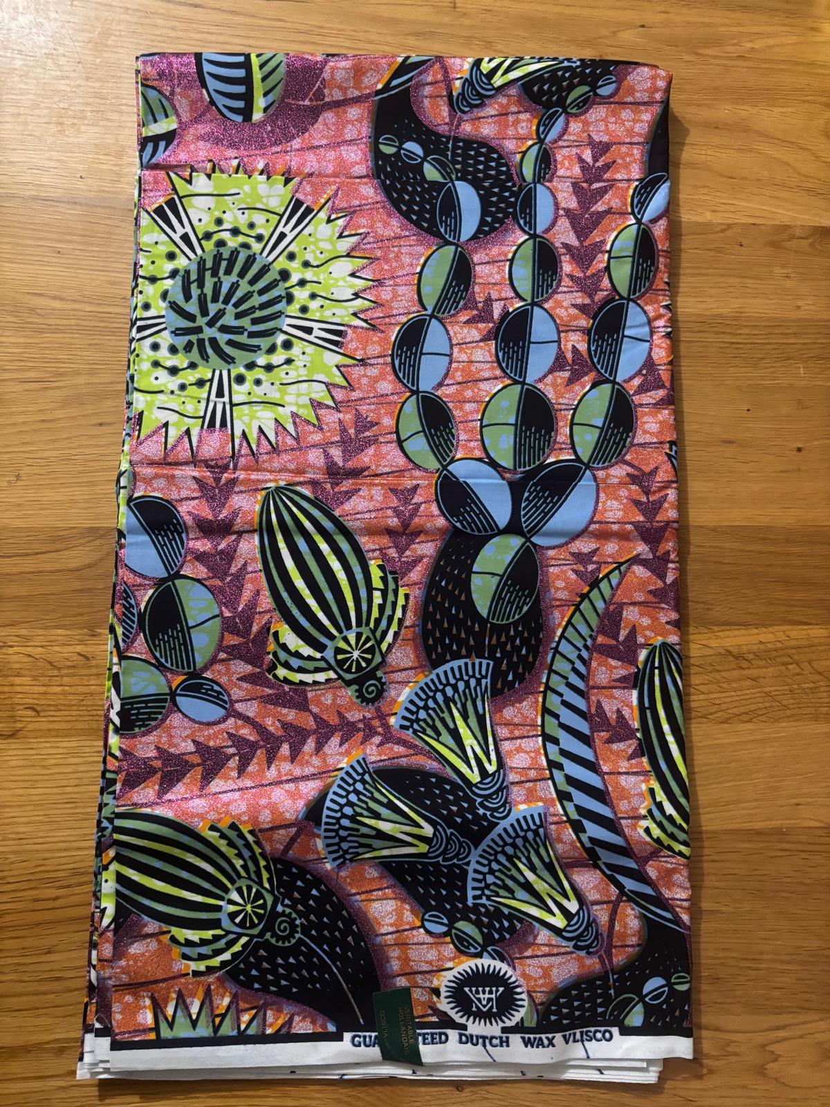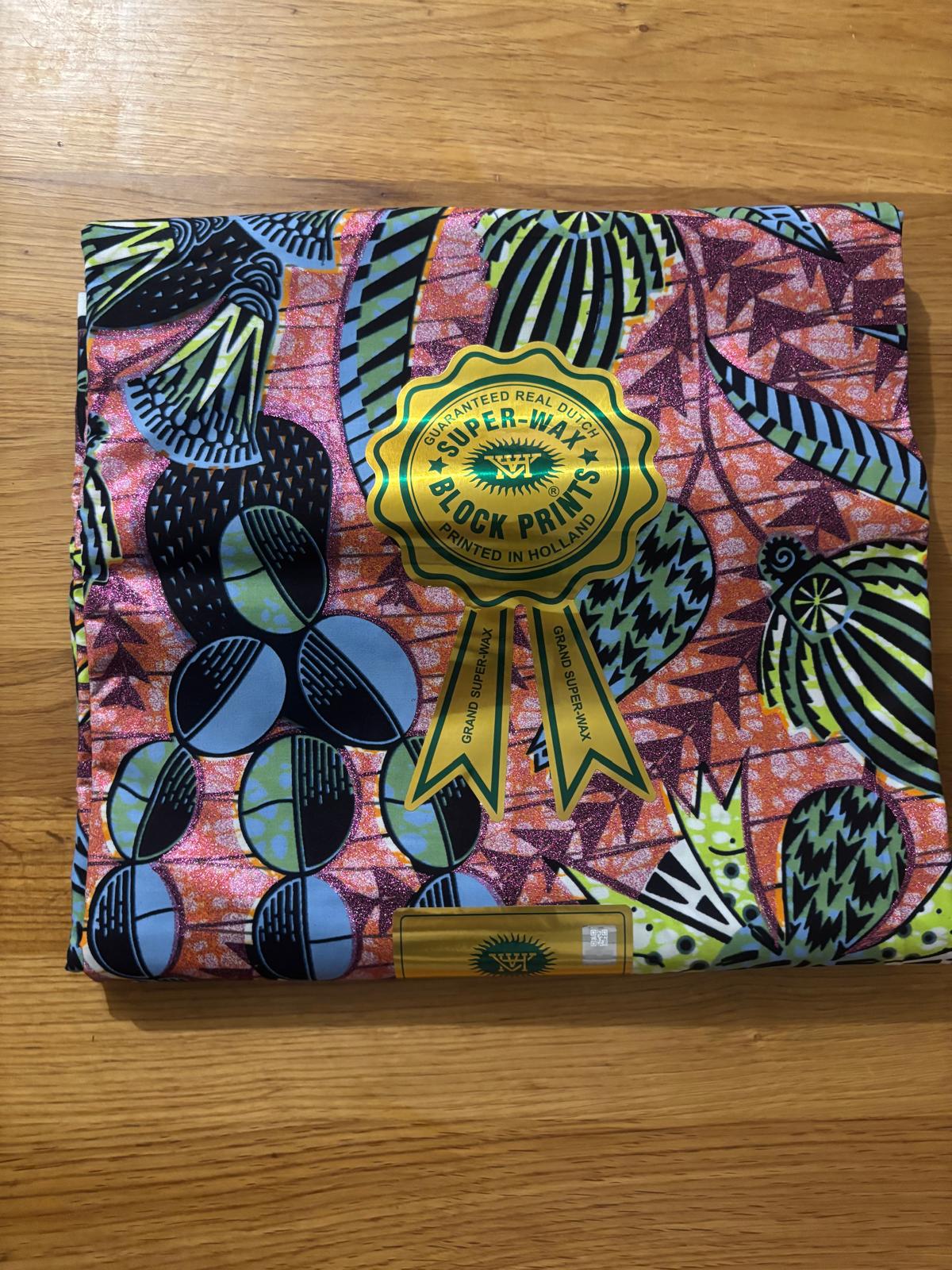 Ce magnifique tissu super wax hollandais arbore un éclat envoûtant grâce à ses paillettes cuivrées délicatement intégrées dans un fond jaune vif. Le motif, riche en couleurs et en motifs floraux, évoque à la fois l’authenticité de la culture africaine et une touche de modernité. Les paillettes scintillent à la lumière, ajoutant une dimension festive et élégante à ce tissu, parfait pour des vêtements, des accessoires ou des décorations qui attirent tous les regards. Idéal pour des occasions spéciales ou pour apporter une touche de glamour au quotidien, ce wax est un véritable symbole de créativité et de style.