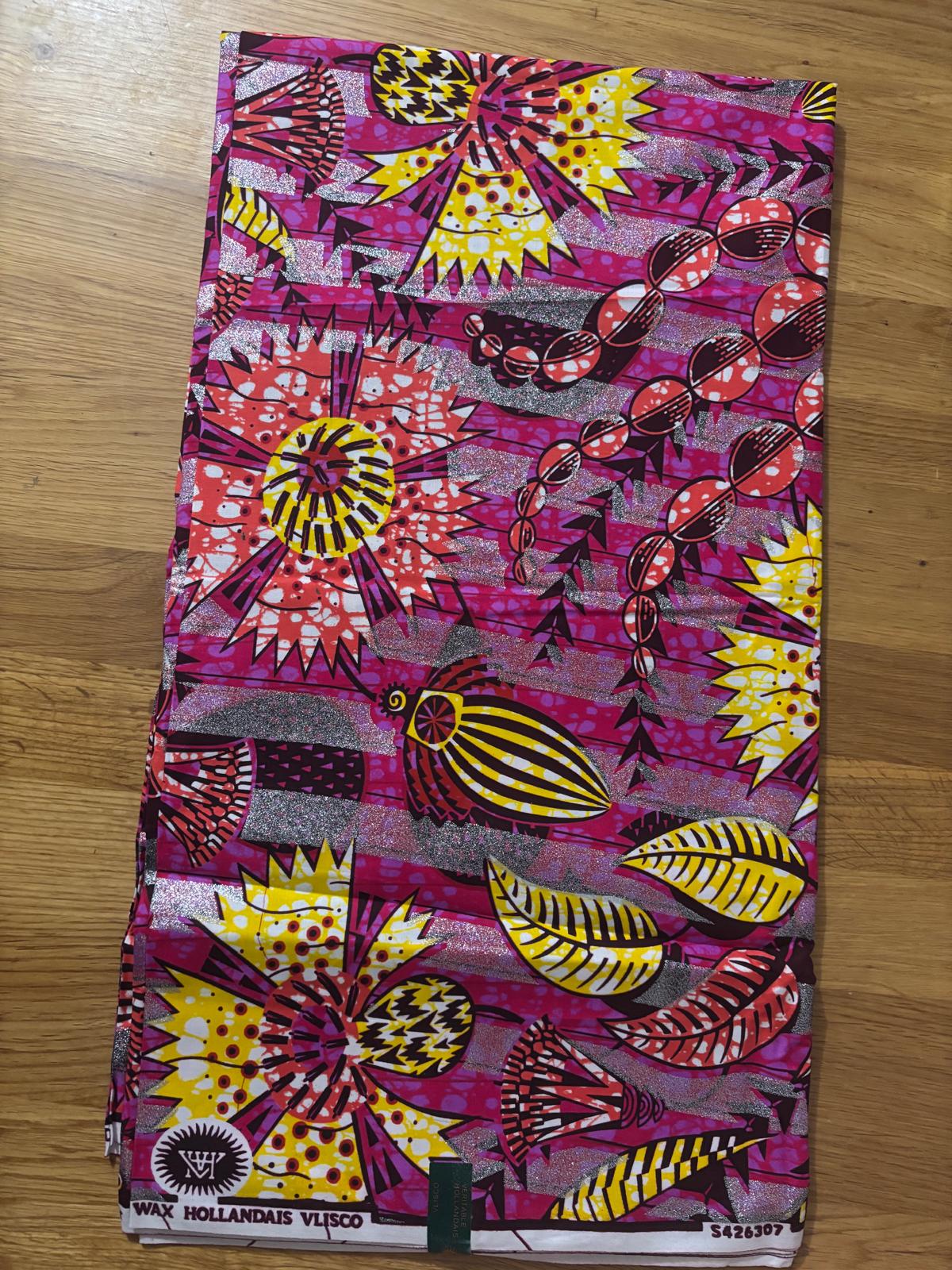 Ce magnifique tissu grand super wax hollandais arbore un éclat envoûtant grâce à ses paillettes argentées délicatement intégrées dans un fond fuchsia vif. Le motif, riche en couleurs et en motifs géométriques, évoque à la fois l’authenticité de la culture africaine et une touche de modernité. Les paillettes scintillent à la lumière, ajoutant une dimension festive et élégante à ce tissu, parfait pour des vêtements, des accessoires ou des décorations qui attirent tous les regards. Idéal pour des occasions spéciales ou pour apporter une touche de glamour au quotidien, ce wax est un véritable symbole de créativité et de style.